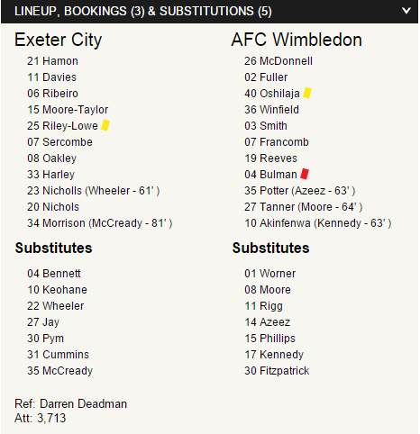 Il manager Neal Ardley ha rilasciato queste dichiarazioni al Dons Player, nel post gara: "E' stata una sconfitta severa, ma non siamo stati in grado di mettere in mostra il nostro lavoro, nel corso della gara, ed abbiamo perso per questo motivo.